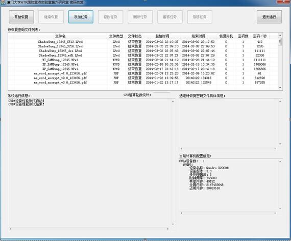 密码恢复系统是在厦门是国家安全局关怀和指导下独立开发的、使用GPU加速和分布式计算的数据密码恢复系统。