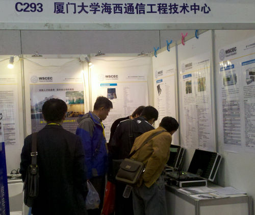 厦门大学海西通信工程技术中心的展位上展示了多款自主研发的最新实验平台:其中包括2套基于FPGA+AD/DA+RF的软件无线电实验箱平台,1套基于Android嵌入式开发平台、1套基于TI DM3730双核+54X系列DSP+67X系列DSP的嵌入式异构多核实验平台,1套物联网平台,同时展出了多种高级软件无线电开发板,电子综合实训平台,GPS、北斗信号采集器等引来参观者返复观摹、拍照,并且有来自烟台、湖北、南京等地经销商现场咨询,并表达代理意愿。